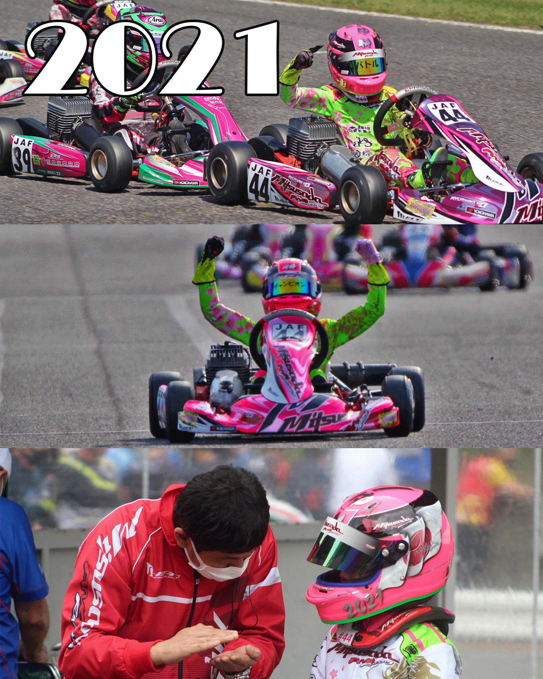 この1年目の悔しさはとても大きく、その想いを原動力に2年目以降は2021年ジュニアカデットクラス、2022年FP-Jrクラス、2023年FP-3クラス、2024年FS-125クラス、2025年FS-125クラスでタイトルを獲得し、全日本カート選手権に参戦して史上最年少で優勝とチャンピオンを獲得しました。