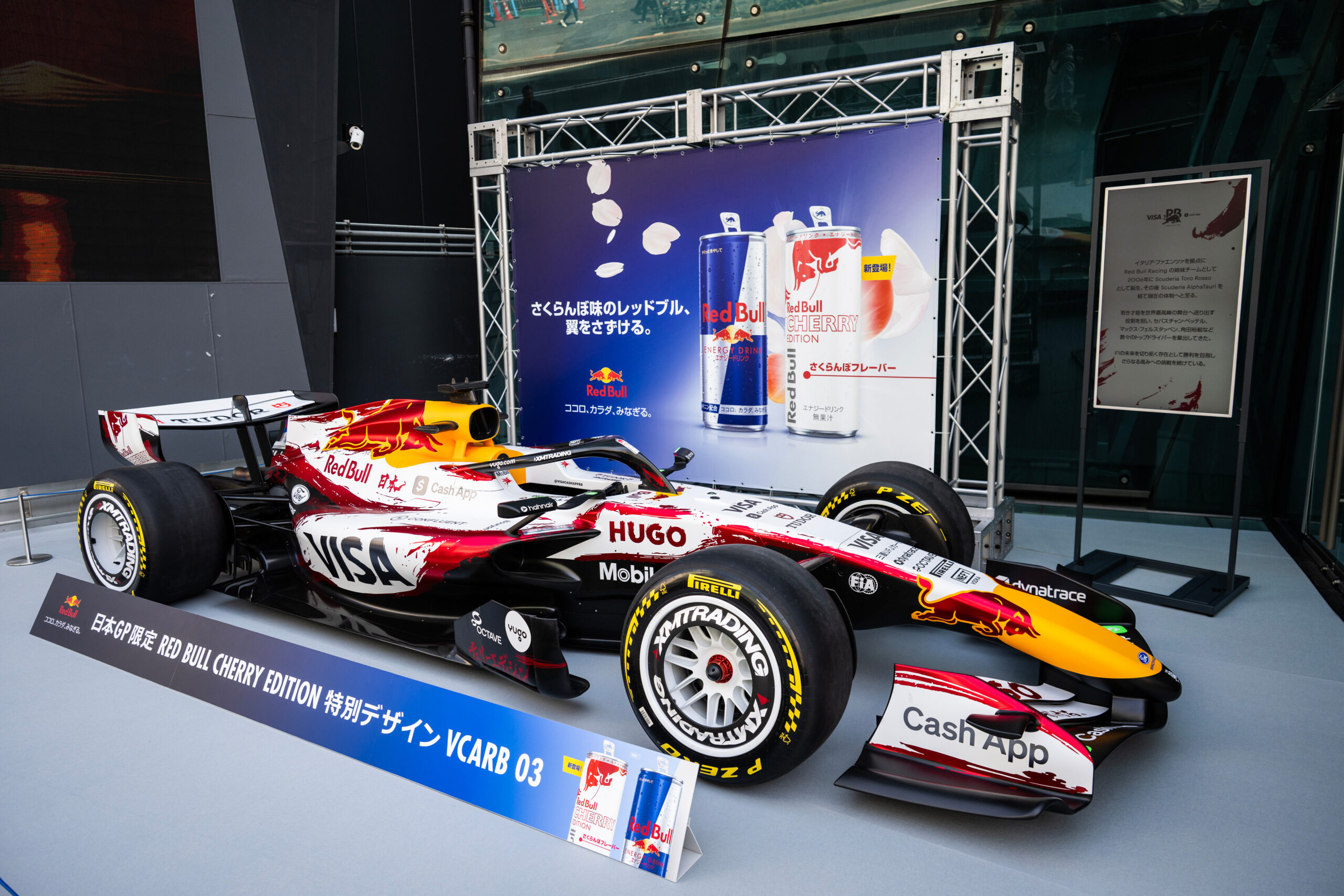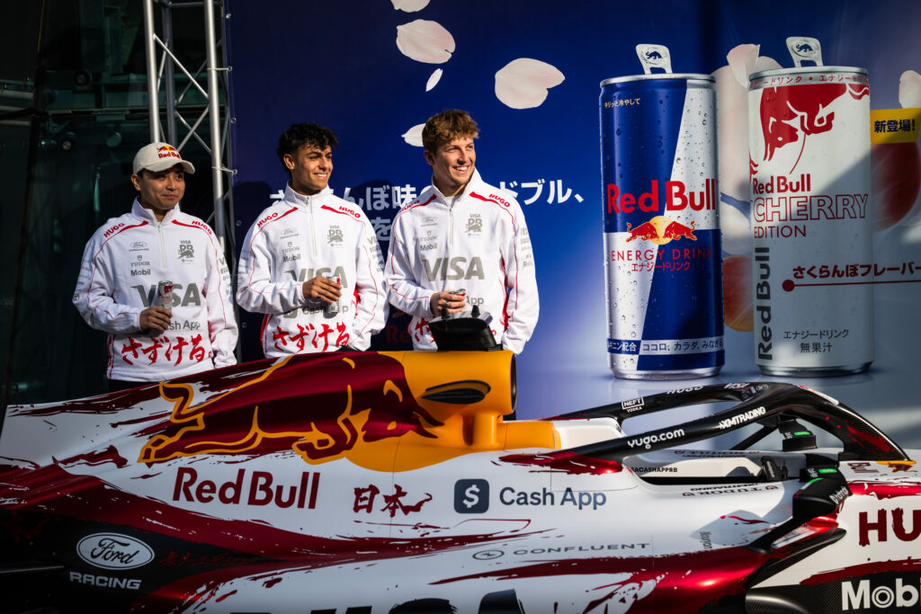 新発売の「レッドブル・エナジードリンク チェリーエディション」と書道家・青柳美扇氏のコラボによる、F1日本GP限定のスペシャルリバリー仕様VCARB03 Jason Halayko / Red Bull Content Pool