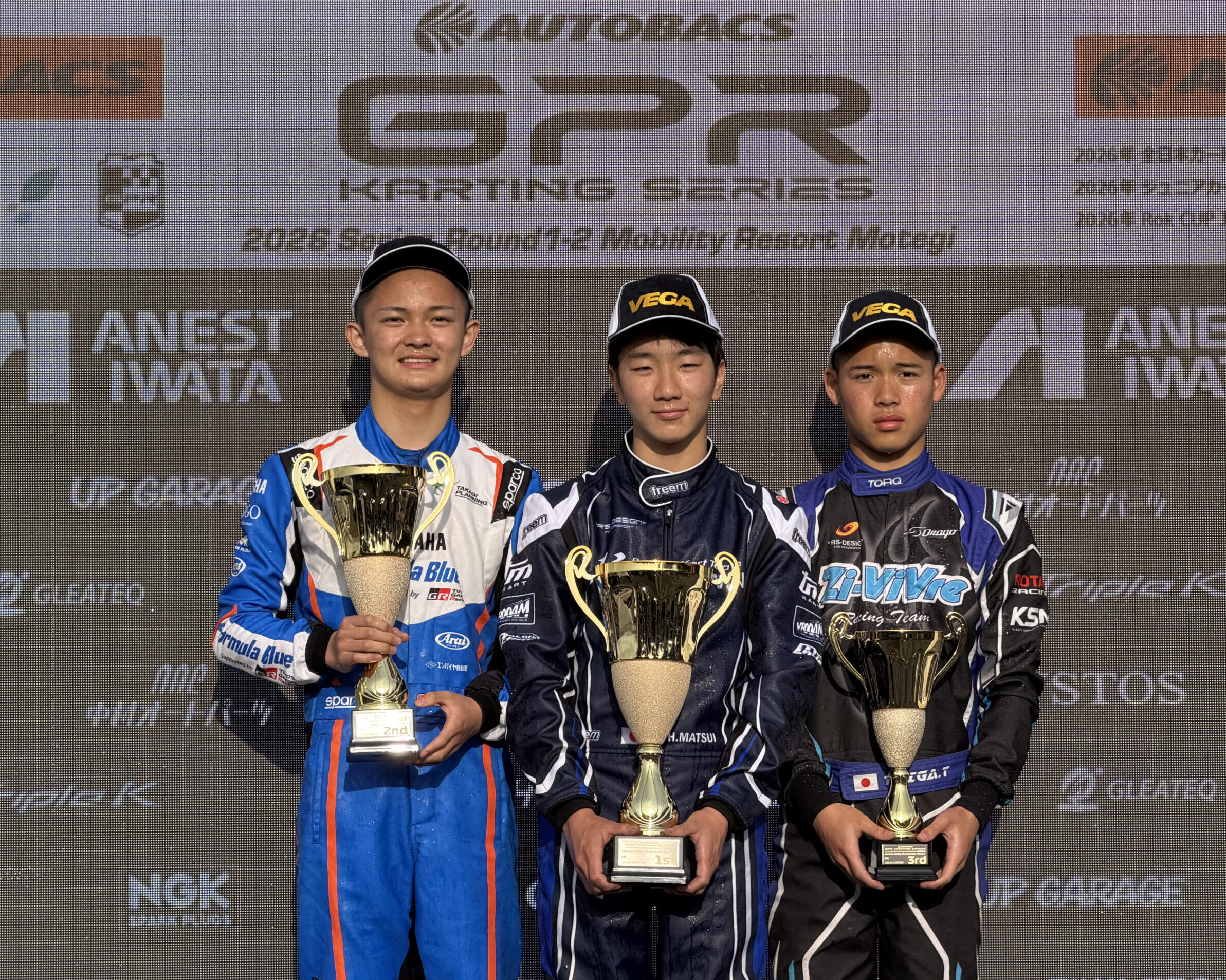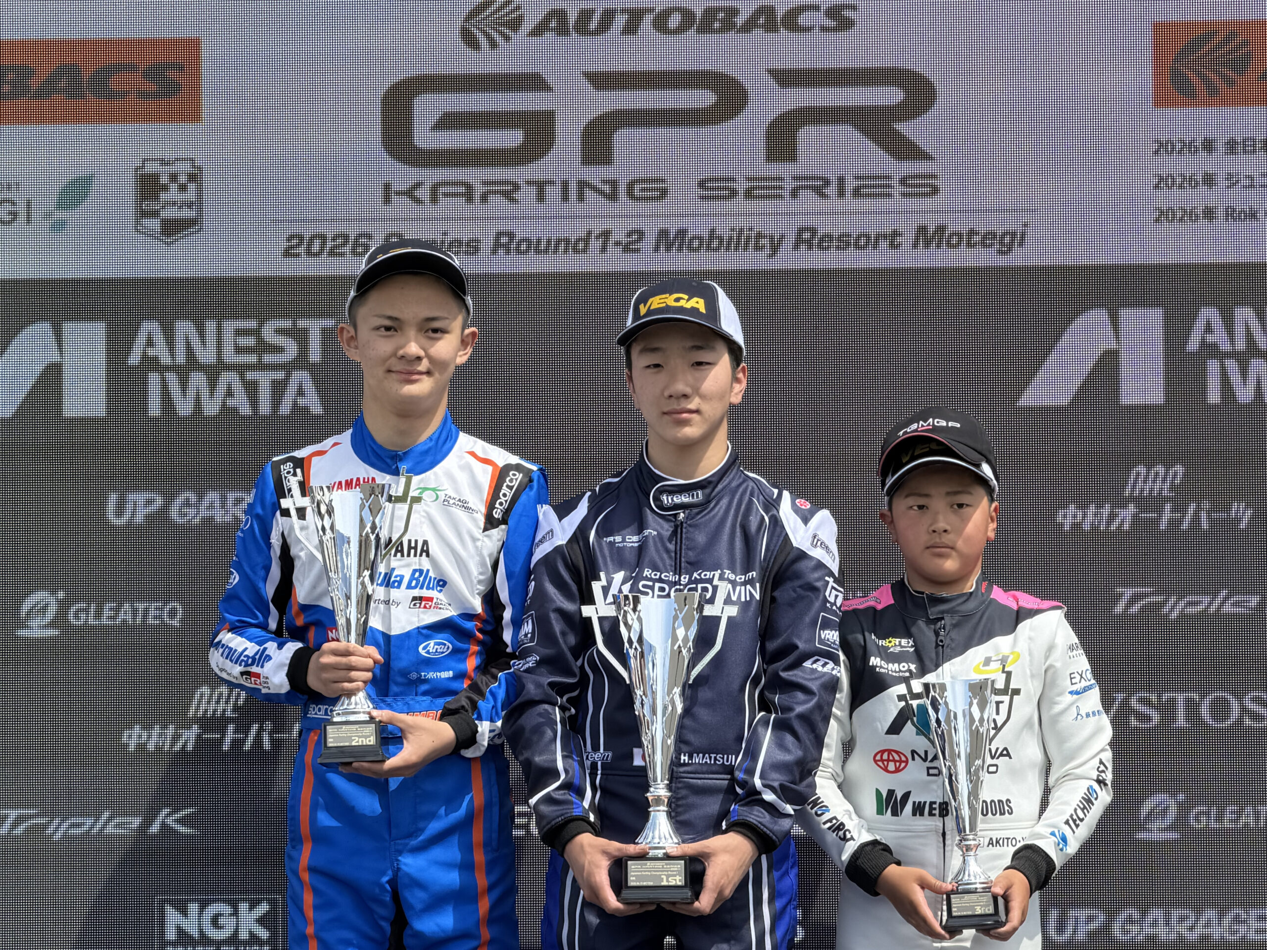 しかし、先頭の松居選手は周回を重ねるごとにレースをまとめ、終始安定したペースを維持。デビュー戦とは思えない堂々たる内容でトップチェッカーを受け、OK部門初レースで初優勝という見事な結果を残した。2位には元田選手、3位には横山選手が続き、開幕戦のポディウムには今シーズンOK部門へステップアップを果たしたルーキー勢たちが存在感を示す一戦となった。