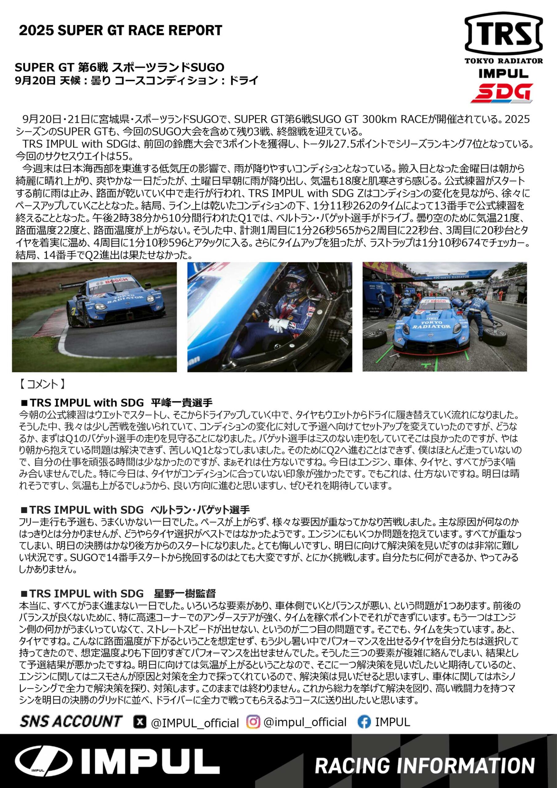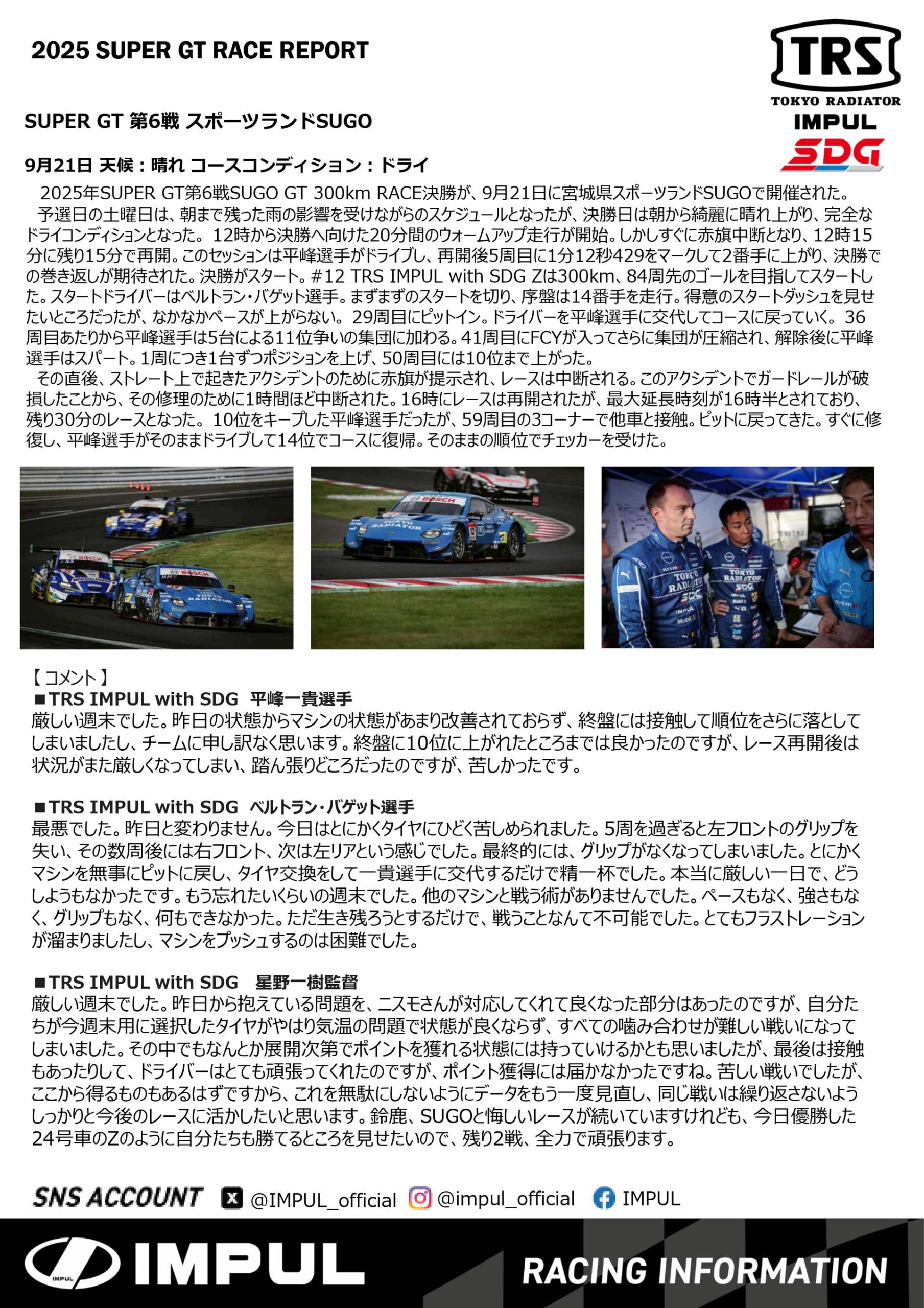 RACING-DRIVER.JPをご覧のみなさまこんにちは。TRS IMPUL with SDGです。